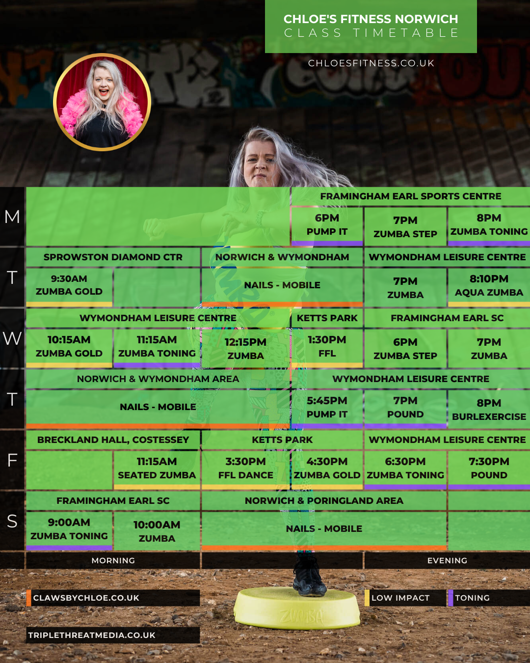 Find my most up to date class timetable here, with location and booking info below.